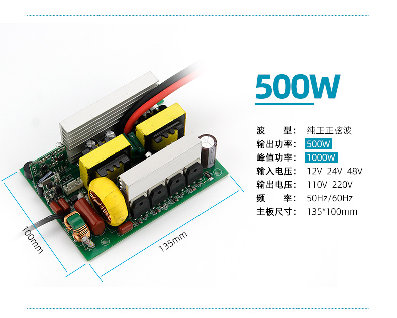 首先對照一下產(chǎn)品尺寸,凈重,再對照一下產(chǎn)品帶載的表現(xiàn)。我們的500W, 1000W, 1500W, 2000W, 3000W, 5000W有專門拍攝了逆變器的帶載情況,可供參考。